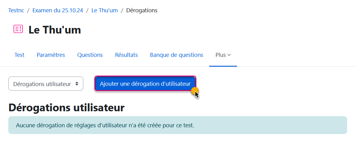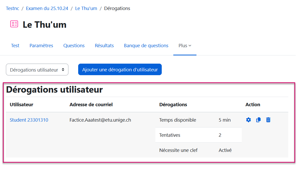 10.1.3 - Dérogation d'utilisateur, attribution d'une tentative supplémentaire