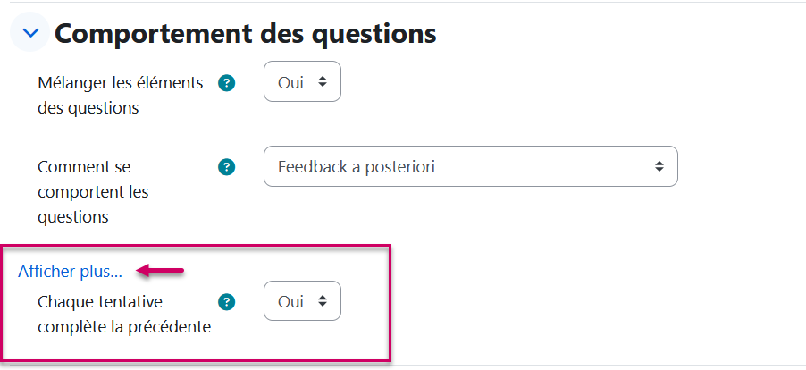 - Ce dernier réglage permet à l’étudiant de retrouver dans sa deuxième tentative l’ensemble de ses réponses à sa première tentative.