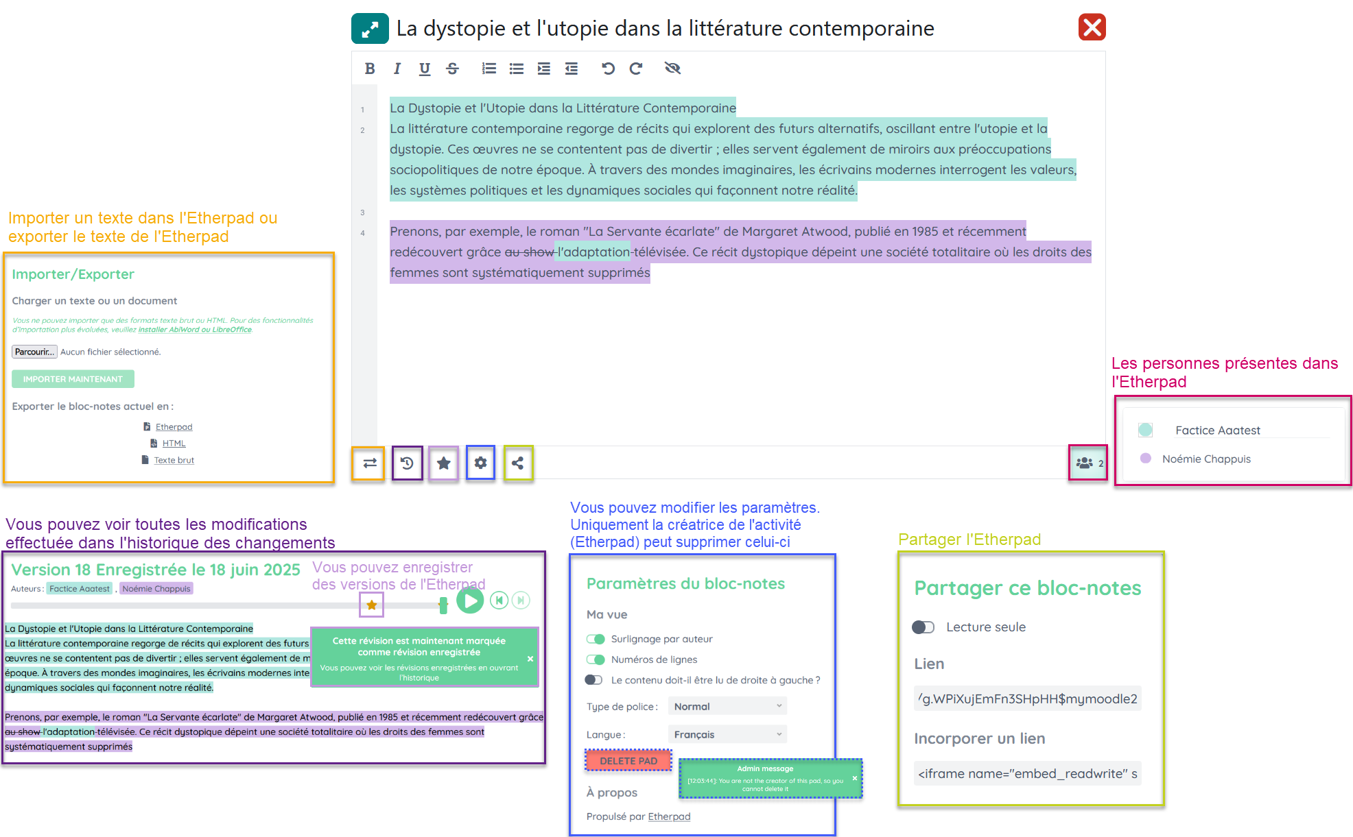 Etherpad permet l'écriture collaborative directement sur Moodle.