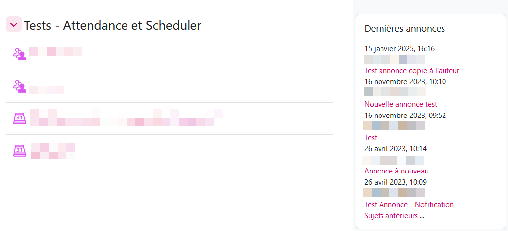 2. vous pouvez également ajouter un bloc "Dernières annonces" afin qu'ils retrouvent les dernières annonces à chaque fois qu'ils entrent dans l'espace de cours