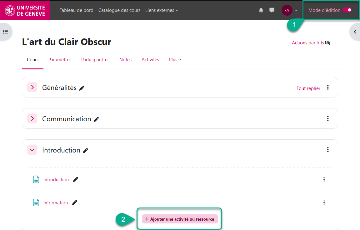 Pour chacun de ces blocs, vous pouvez cochez les informations qui seront données aux étudiant·e·s: