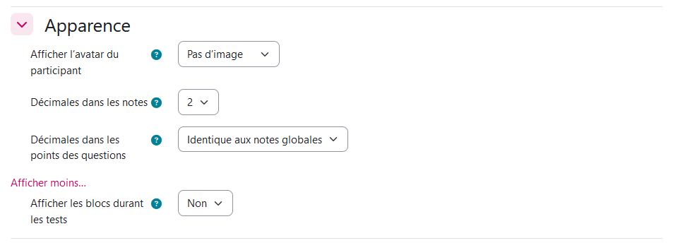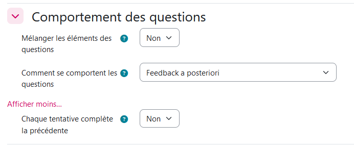 Par défaut, les éléments de réponses sont affichés dans un ordre différent à chaque tentative. Vous pouvez choisir de ne pas les mélanger.